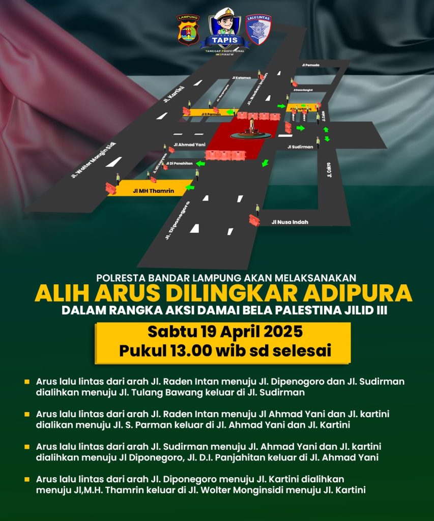Kasat Lantas Polresta Bandar Lampung, Kompol Ridho Rafika, mengatakan bahwa pengalihan arus lalu lintas bersifat situasional dengan melihat perkembangan dinamikan situasi di lapangan.