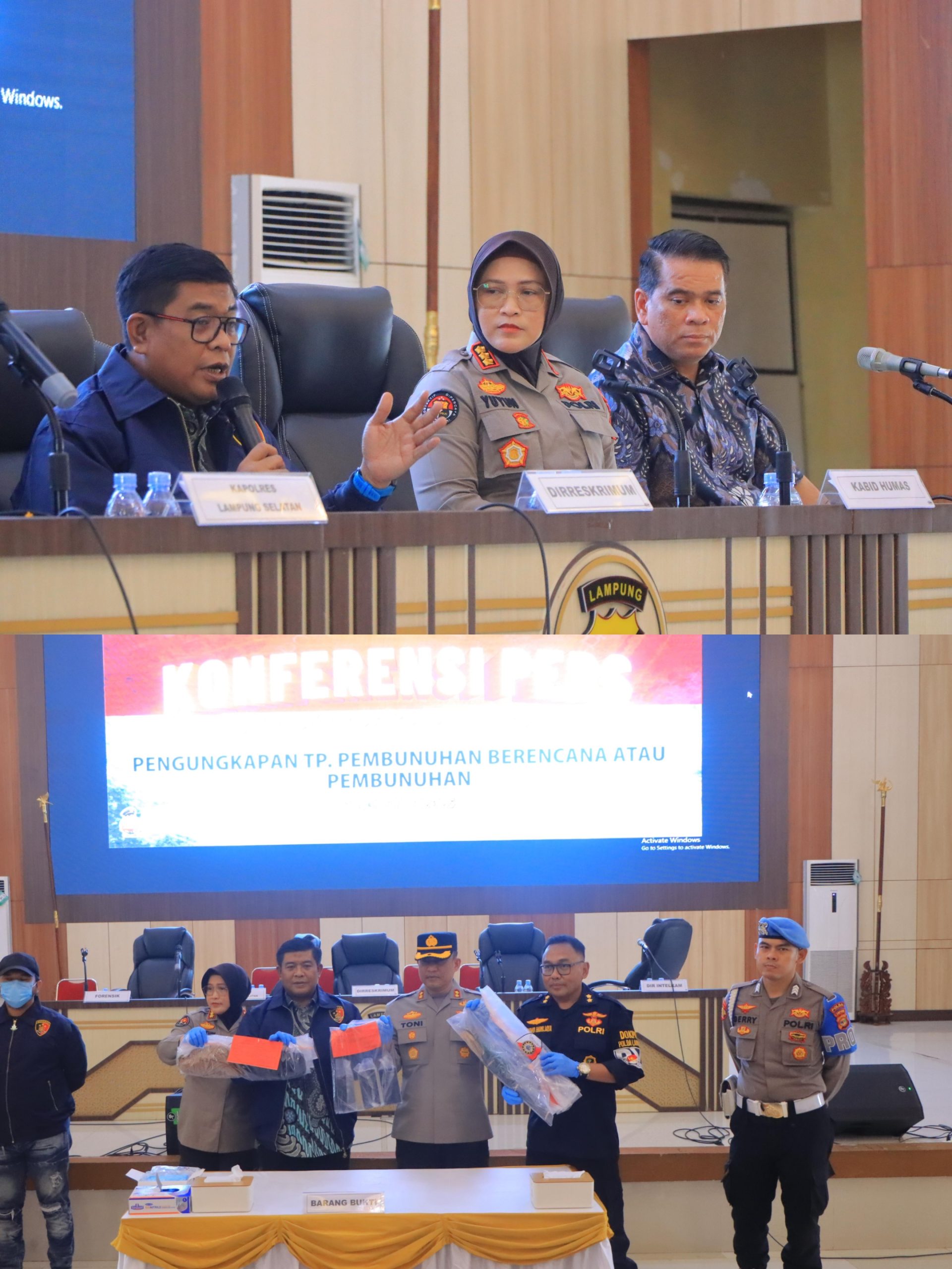 Direktorat Reserse Kriminal Umum (Ditreskrimum) Polda Lampung menggelar konferensi pers terkait pengungkapan kasus pembunuhan berencana yang terjadi di Dusun Kroya , Desa Haduyang, Kecamatan Natar, Kabupaten Lampung Selatan. Jumat(1/8/2025)