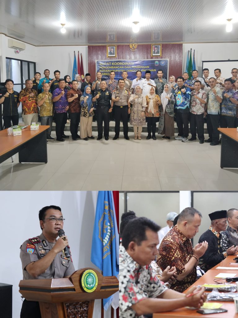 Badan Narkotika Nasional Kabupaten (BNNK) Lampung Selatan menggelar rapat koordinasi pengembangan dan pembinaan Kota/Kabupaten tanggap ancaman narkoba bertempat di Aula Universitas Muhammadiyah Kalianda, Kabupaten Lampung Selatan. Kamis, 24/04/2025.