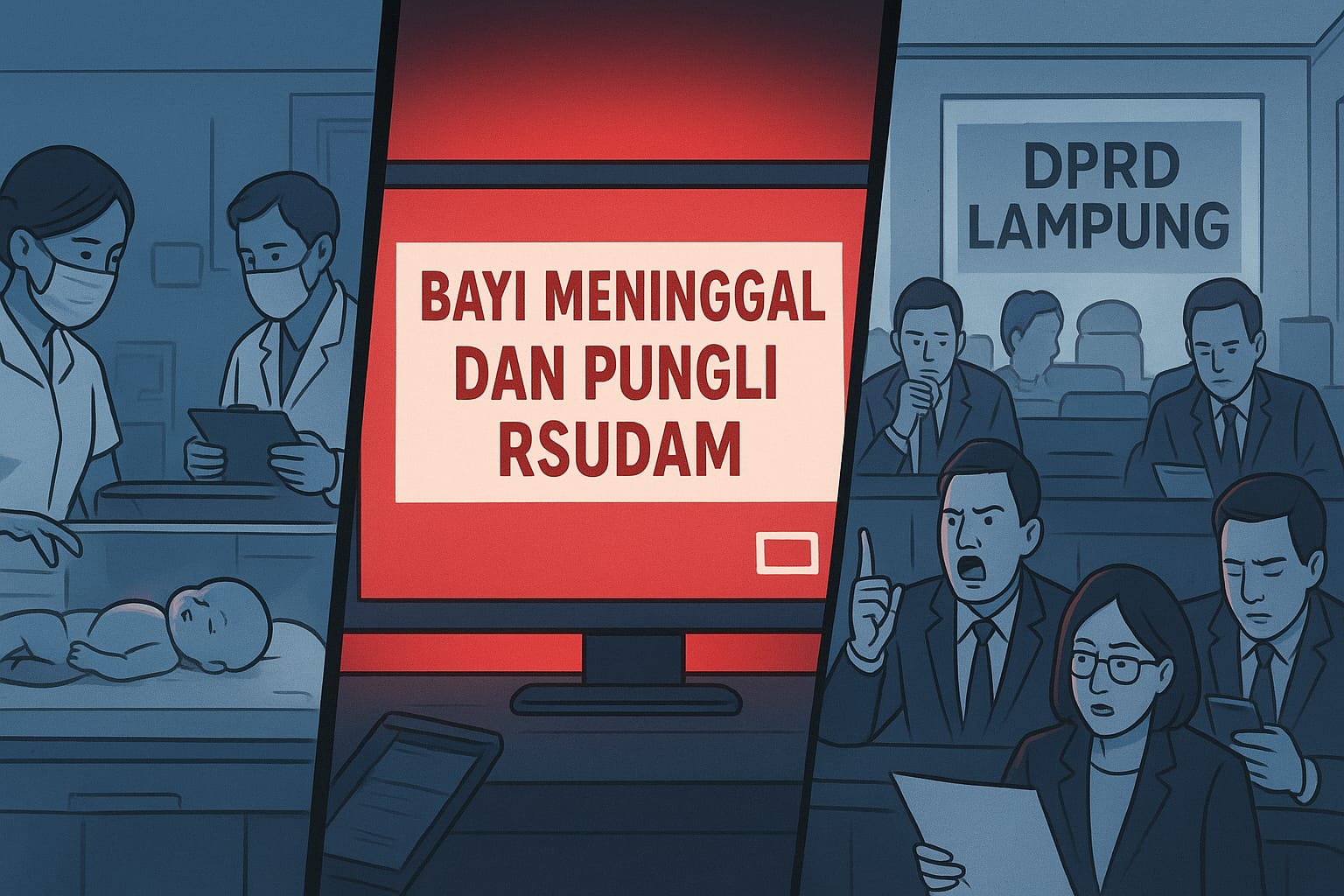 Suasana hening tiba-tiba pecah ketika Udin menunjukkan notifikasi berita di ponselnya. Kabar duka yang belakangan membuat heboh publik: seorang bayi dari Lampung Selatan meninggal di RSUD Abdul Moeloek (RSUDAM). Tak cukup sampai di situ, muncul pula kabar pungutan liar yang dilakukan oknum dokter rumah sakit pelat merah itu.