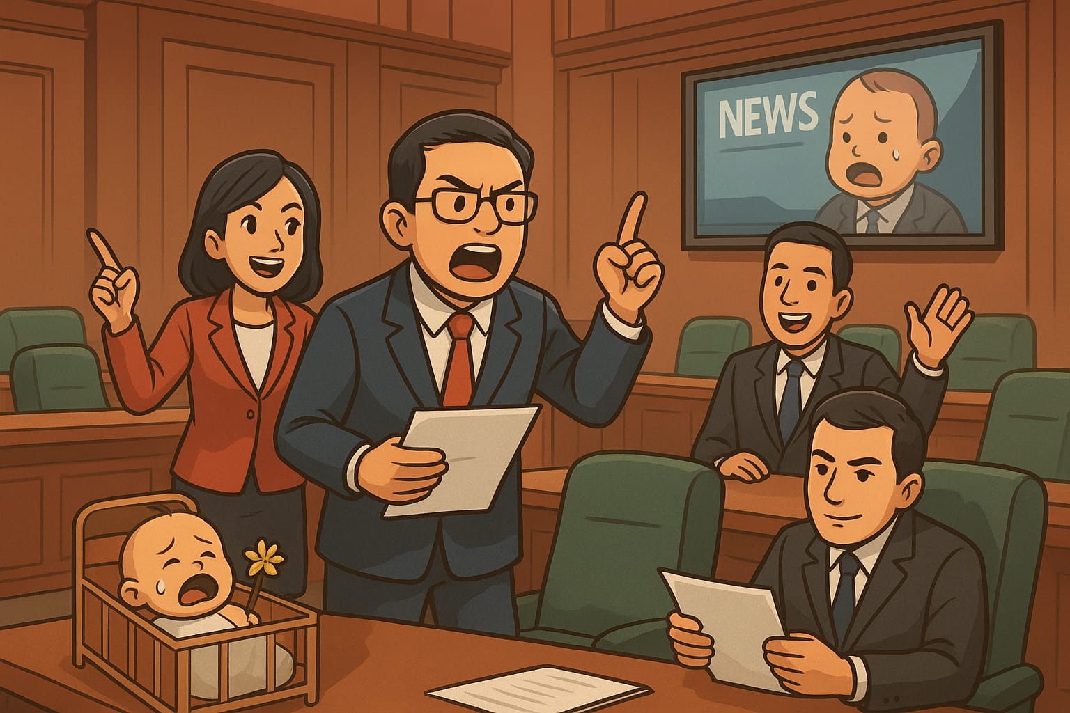 Udin mengangguk, suaranya pelan. “Bayi itu sudah tiada, Ji. Tapi di panggung dewan, tragedi berubah jadi modal politik. Hari ini satu kasus, besok kasus lain. Sinetron ini tidak akan tamat. Tinggal tunggu siapa pemain baru yang akan tampil.”